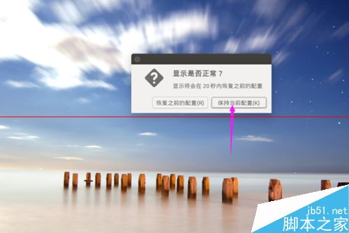 5、點擊應用之后,我們可以看到這里會有一個提示,詢問你是否顯示正常,如果不正常,我們可以點擊“恢復之前的配置”,如果正常,我們直接點擊“保持當前配置”即可。