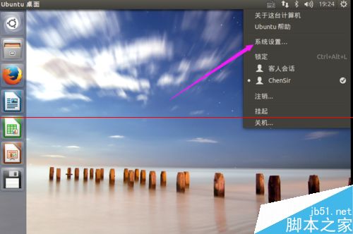 1、當我們啟動Ubuntu以后,我們點擊右上角的設置按鈕,如圖示,點開之后,再點擊“系統(tǒng)設置”。