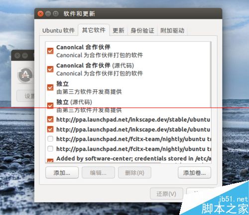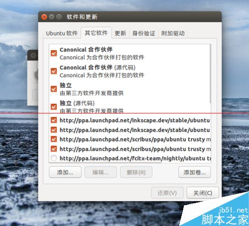 5、軟件源添加后要檢查一下所添加的軟件源前面是否打了“√”,如果沒打對勾的話是不會啟用軟件源的。