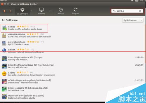 2、在搜索輸入框中輸入“Samba”進行搜索。