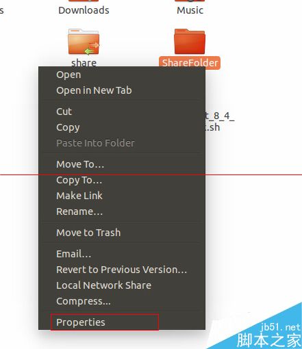 2、命名該文件夾(ShareFolder)后右鍵該文件夾,在快捷菜單中點擊屬性(Properties)