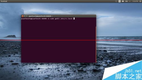 5、打開終端,輸入以下內容:sudo gedit /etc/rc.local