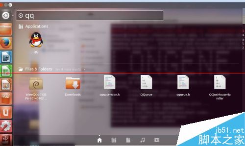 6、通常會在桌面生出qq程序運行圖標,點擊可以運行,如果沒有,可以在dash中搜索qq,如圖所示,找到該程序。