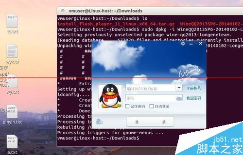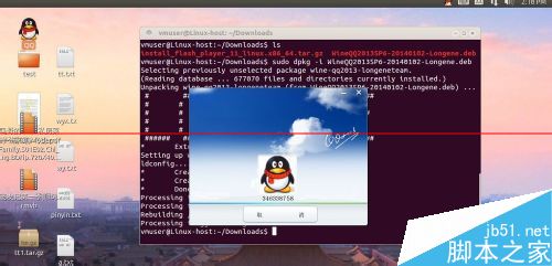 5、ls命令查看當前目錄下的文件,使用shell命令安裝qq該軟件包,sudo dpkg -i WineQQ... ...deb,等待 安裝完成。