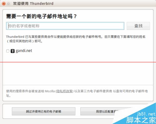 2、點擊這個雷鳥郵件的圖標。點擊左下角的按鈕 跳過并使用已有的郵箱