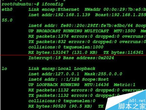 5、利用ifconfig命令來查看虛擬機(jī)Ubuntu的網(wǎng)卡配置情況,這里的ip是192.168.1.139。