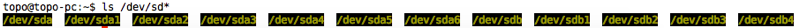 使用ls /dev/sd* 命令查看所有連接到電腦上磁盤。