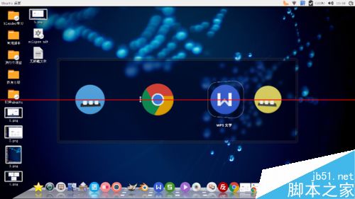 3、現在我們在桌面左邊的面板上找到"左右兩邊有小白點"的chrome瀏覽器應用圖標,這就是chrome的窗口列表。