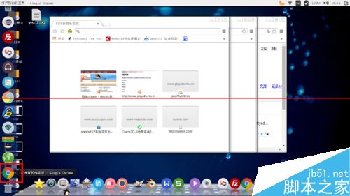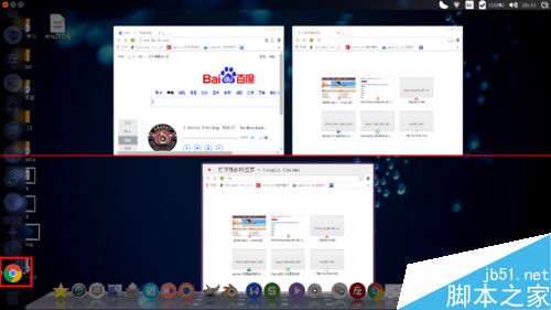 4、現在我們鼠標左鍵點擊一次再點擊一次"左右兩邊有小白點"的chrome應用圖標,這時在桌面上就會列出創建的chrome窗口,可以選進行切換。