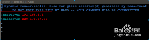 7、在里面添加:nameserver 192.168.1.1nameserver 220.170.64.68,如圖:
