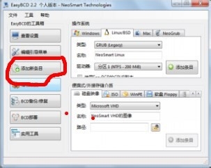5、類型選GRUB 2,驅(qū)動(dòng)器選擇自動(dòng)定位和加載,然后點(diǎn)擊添加條目