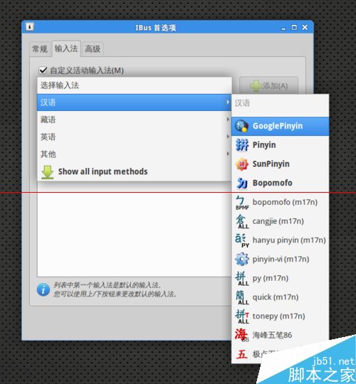 1、用終端模擬器復制以下命令安裝google拼音輸入法: $sudo apt-get install ibus-googlepinyin