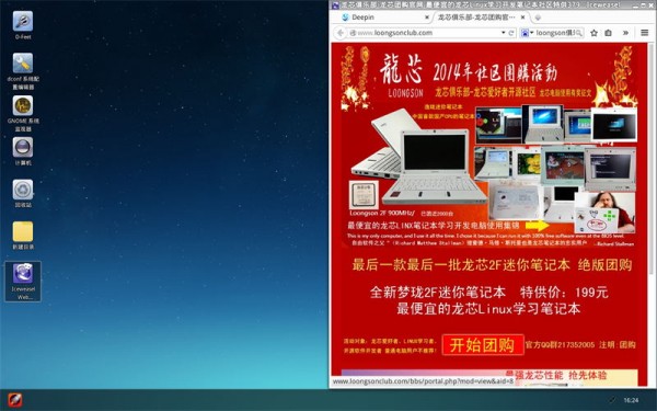 據Deepin 工程師介紹,由于目前的開發(fā)還在馬不停蹄的進行中,最近又新增了龍芯3B的開發(fā)機,爭取盡早完成全部移植工作,移植成功后的Deepin 龍芯版和X86版沒有什么區(qū)別。這次還放出了龍芯3B電腦Deepin系統(tǒng)上用Iceweasel瀏覽器訪問網站的截圖,Iceweasel(冰鼬))網絡瀏覽器,是Mozilla Firefox瀏覽器的Debian再發(fā)布版。