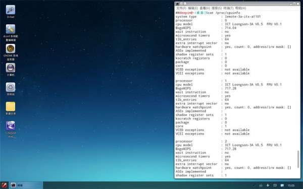 圖 2 龍芯3A電腦運行Deepin系統(tǒng)截圖