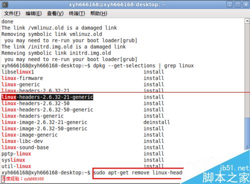 在 linux-image-2.6.32.21-generic 后面顯示deinstall,表示已經(jīng)卸載了