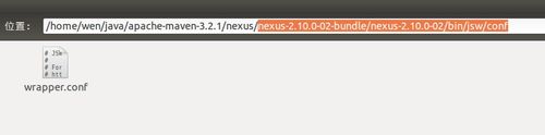 3、解壓縮后 進入 nexus-2.10.0-02-bundle/nexus-2.10.0-02/bin/jsw/conf
