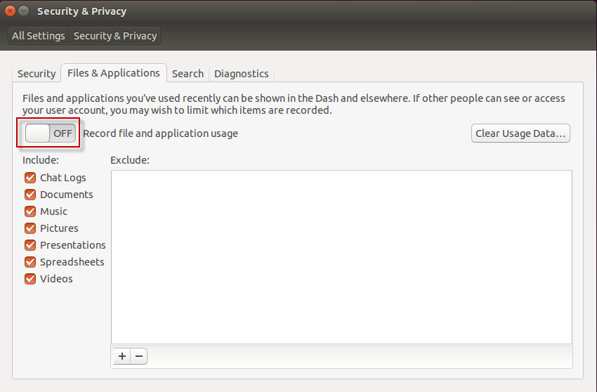 你也可以關閉“記錄文件與應用使用(Record file and Application usage)以阻止系統記錄你當前使用的文件和應用。