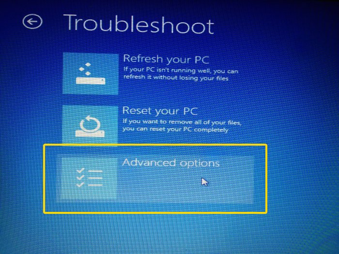 如果第六步中的命令不起作用,試試高級疑難解答中的自動修復選項。