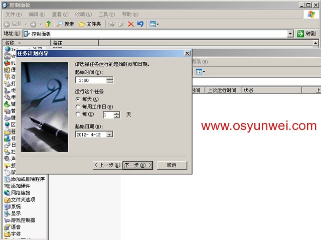 三、在cwRsync客戶端的任務計劃中添加批處理腳本文件,每天凌晨3:00鐘自動同步Rsync服務端/home/mysql_data目錄中的數據到D:/mysql_data目錄