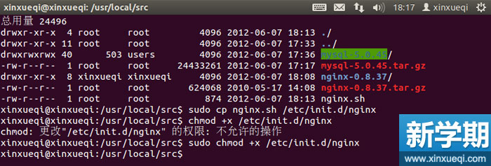 將附件中的nginx.sh復制到/etc/init.d/nginx,鍵入“sudo cp nginx.sh /etc/init.d/nginx”回車,再執行“sudo chmod +x /etc/init.d/nginx”。