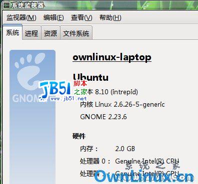 可以看到內核的版本為 Linux 2.6.26-5-generic,GNOME的版本為 2.23.6
