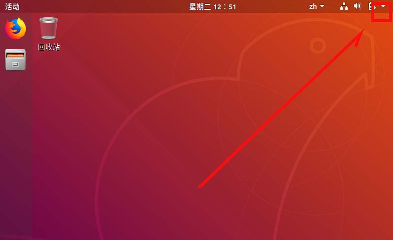 1、進入ubuntu桌面,點擊右上角的三角形開關機按鈕。