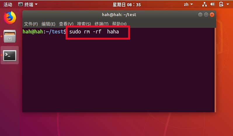 6、一般文件夾里面有文件是刪除不了的,我們可以使用sudo rm -rf haha 強制刪除,不過這里要注意小心操作。