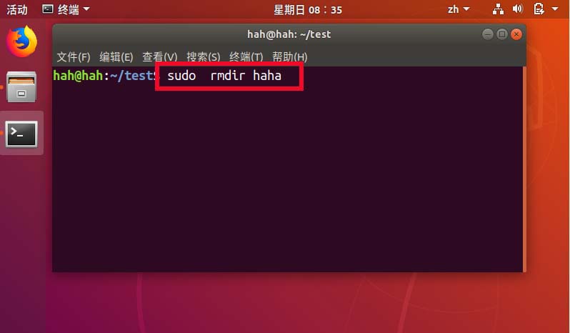 5、現(xiàn)在我們嘗試使用 sudo rmdir haha 刪除文件夾。