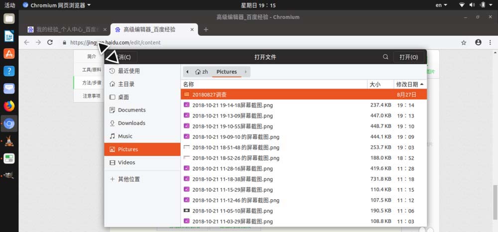 2、這時,如果打開“打開文件”對話框(這是一種“模態”對話框),可以看到對話框占滿了整個屏幕,它的父窗口——瀏覽器根本看不見了。而且,由于對話框默認占滿整個屏幕,想用更改窗口大小的方法看到其背后的父窗口,也很不方便——你無法精確地將光標定位到對話框的邊緣。