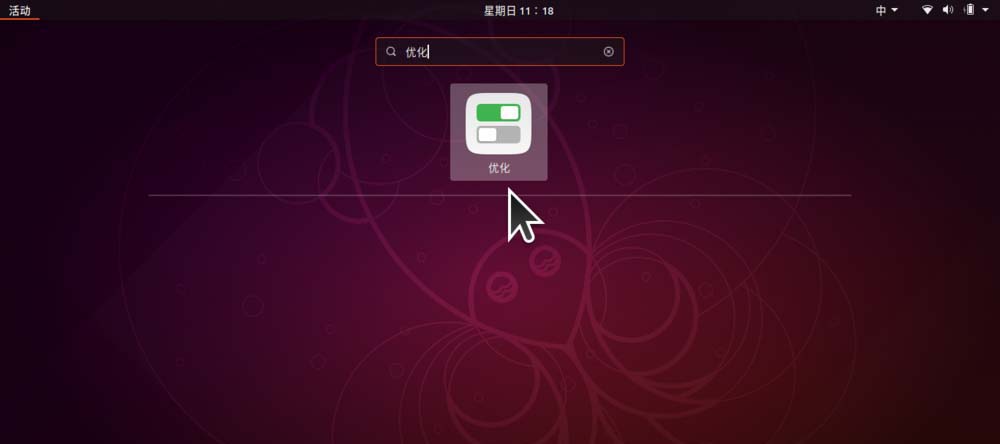 3、這時,需要修改對話框的這個“附加”設置——需要用到 Gnome Tweaks 優化工具這個軟件。按下 Super 鍵(也就是鍵盤上的 Win 鍵),輸入“優化”二字,按下回車即可啟動Gnome Tweaks 優化工具這個軟件。