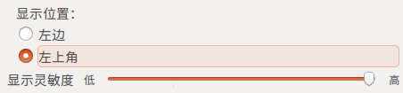 6、設置鼠標位置與靈敏度,鼠標激活啟動器,有2種方式,左上角與左邊,如果選擇左上角,那么鼠標放到左邊的時候,不會激活啟動器,這個需要根據個人習慣設置,靈敏度越高,鼠標停留之后越快激活啟動器。