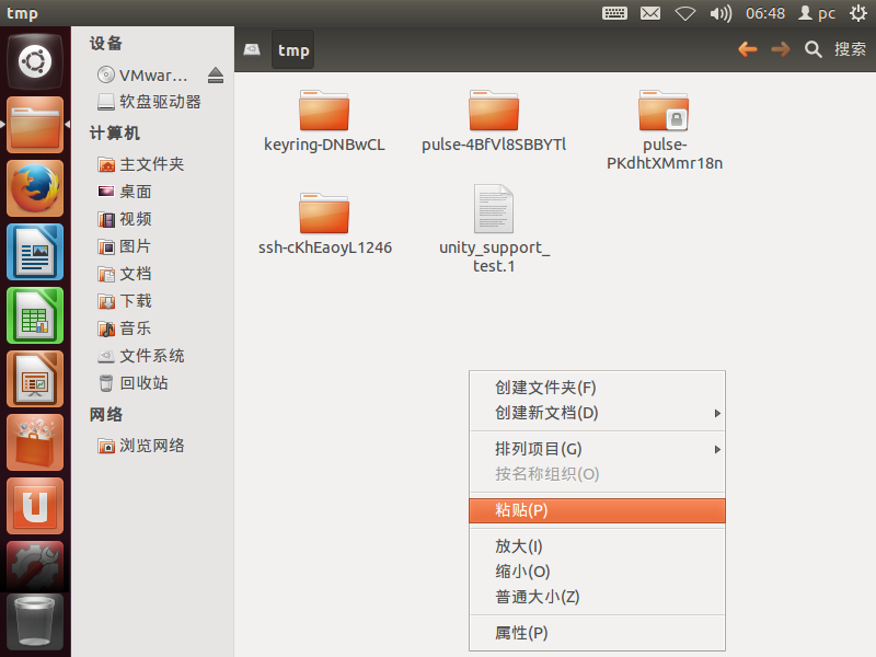 3、點(diǎn)擊左邊的“文件系統(tǒng)”找到tmp文件夾進(jìn)入后粘貼,就是一個(gè)Windows操作。