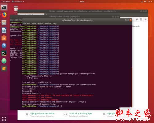 以上便是小編為大家整理的關于在Ubuntu里創建Django超極用戶的的詳細操作過程,希望能夠幫到你,武林網會持續發布更多資訊,歡迎大家的關注。