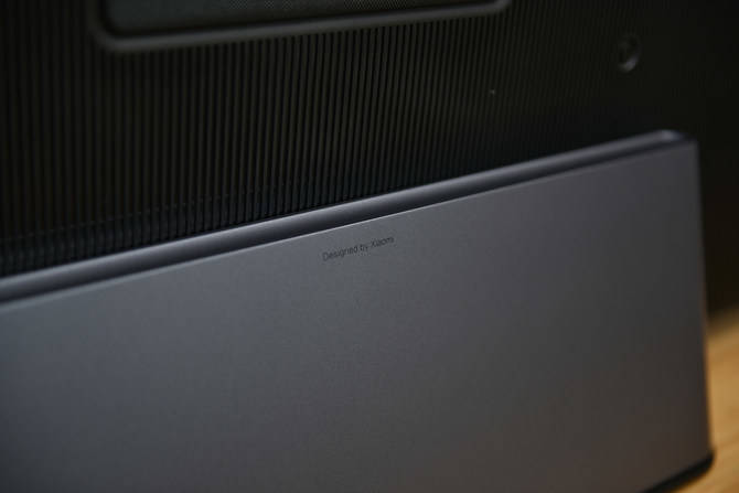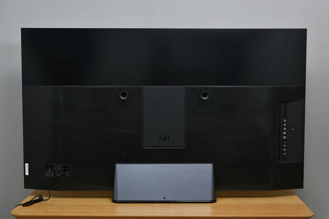 背面的支架采用了金屬的材質(zhì),上面印有designed by Xiaomi的字樣。整個(gè)電視的背面都預(yù)留有相對應(yīng)的接口,如果覺得整個(gè)底座設(shè)計(jì)不夠協(xié)調(diào)的話,還可以選擇壁掛的方式直接安裝就可以。