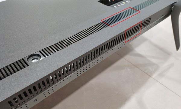 榮耀智慧屏X1的喇叭單元是一邊各兩個獨立揚聲器,一全頻一高頻,喇叭朝下,聲音經(jīng)下方反射向四周擴散。小米電視5Pro雖然官網(wǎng)號稱四單元喇叭,實際上從官網(wǎng)資料及我們實際觀察來看,應(yīng)該是每個模塊上有一個低音單元、一個全頻單元,全頻單元方向朝下,低音單元朝后。功率上也只是2×8W=16W。榮耀智慧屏X1則是總共40W。