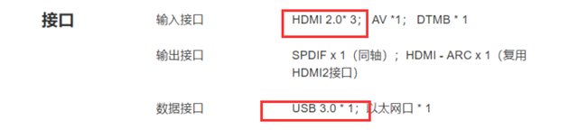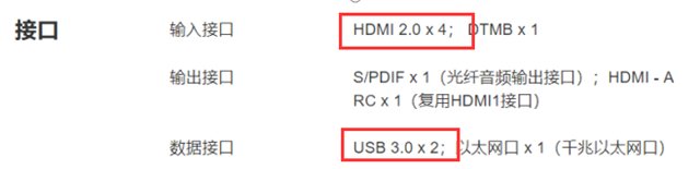 4、接口上,華為智慧屏X65接口有所增加,輸入接口HDMI 2.0和數據接口USB 3.0分別增加一個。