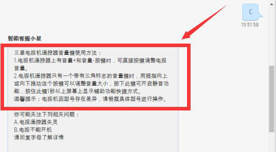 5、智能客服界面,輸入“三星遙控器怎么調節音量”點擊發送。