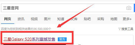 1、首先,在電腦端打開瀏覽器輸入“三星官網”搜索網頁。