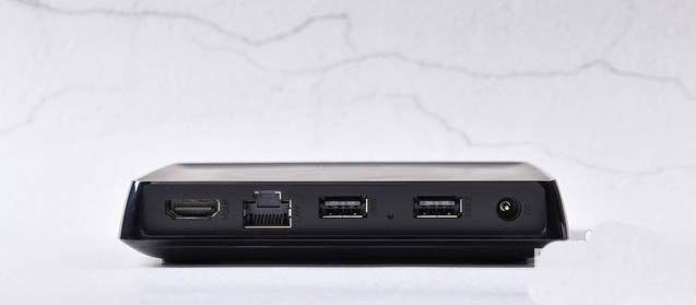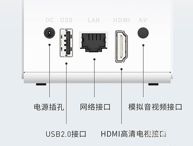 2、牛奶盒子M1的接口同樣也是在背部,從左到右依次是:HDMI接口、網線接口、兩個USB接口以及電源接口。
