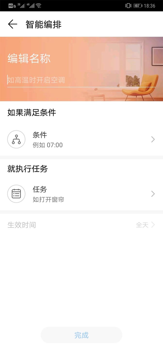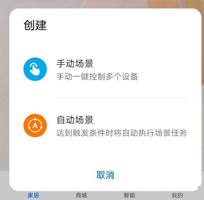 2、進(jìn)入智慧生活app首頁(yè),點(diǎn)擊右上角“+”,選擇創(chuàng)建智能。