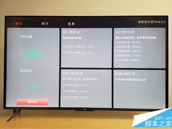 除了性能強(qiáng)悍的處理器外,小米電視5 Pro還配備4GB+64GB 超大存儲。通過安兔兔評測TVv6.0.2版本獲得總分47974分的成績,其中3D得分7892分,CPU得分15659分,UX得分19116分,RAM得分5307分,達(dá)到目前電視處理器中的頂尖水準(zhǔn)。