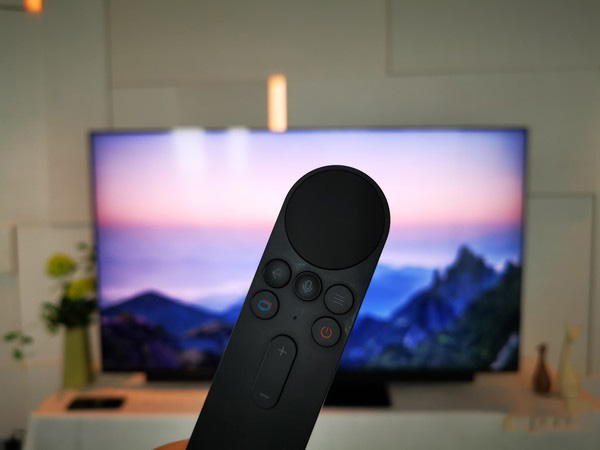 這款遙控器采用了8.3毫米的超薄ID設計,在最上方是一塊按壓式觸控板,用戶可以通過觸控實現對智慧屏的操控,而且全新的按鍵布局,也更加符合人體工程學,在帶來美感的同時,使用體驗也不落下風。在遙控器下方,有一個NFC區域,用戶將手機貼合過來,就可以完成神奇的投屏操作。