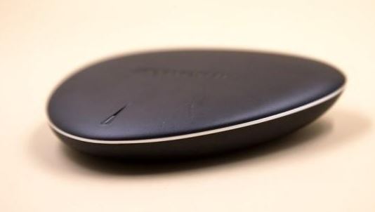 創維Q+二代盒子外觀圓三角的造型十分奇特,底部設計有差不多三分之二的防滑圓形塑膠面,可以穩定的放置于桌面。