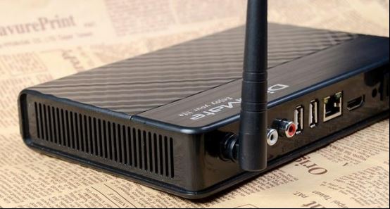 迪優(yōu)美特K7外置一根天線,盒子機(jī)身空間大,兩側(cè)都分布有散熱格柵,可以幫助盒子有效散熱。接口齊全,分布有AV線接口、USB接口、網(wǎng)線接口以及HDMI接口。