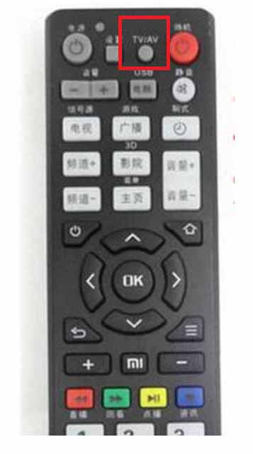 4、如果沒有在應用程序界面那里設置有,那么要在遙控器那里按下“TV/AV”鍵,從TV切換成AV就可以看廣電信息源了。