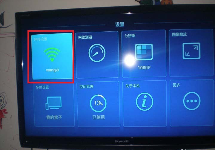 1、使用網線直接插入網線口就行了。無線設置,需要使用遙控器操作。用遙控器選中齒輪圖標,按 確定。