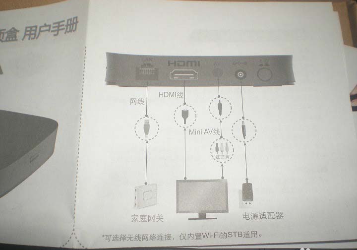 1、電源線插入小圓接口,如果電視機支持盡量使用高清線。