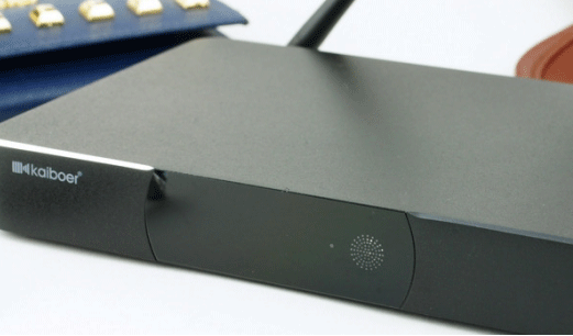 開博爾網絡機頂盒機身采用鋁合金外殼設計,外殼是經典的磨砂黑處理工藝,在機身上側邊緣磨角亮條處理,銀色的亮條搭配黑色機身比較美觀。