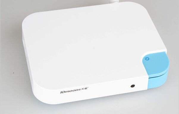 天敏D9在外觀方面采用方形設計,由ABS塑料材質打造而成,通體以白色+藍色為主調,看上去有點兒小清新,四周無棱角,抓在手里感覺很適合,也不易留下指紋,而且便于清潔。