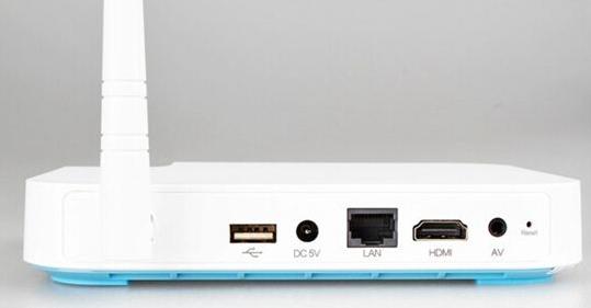 天敏D9機身背面接口豐富,從左往右有USB2.0接口、電源口、網(wǎng)口、HDMI輸出口、AV口和RESET復位鍵。